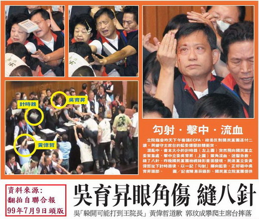圖示↑:民進黨藉立委黃偉哲在議場拿計時器砸傷吳育昇