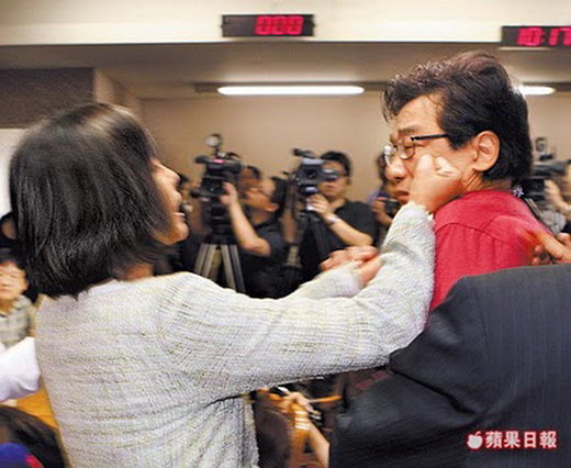 圖示↓:民進黨籍立委邱議瑩在議場手摑李慶華 & 血淋淋的波麗士大人怎麼了?