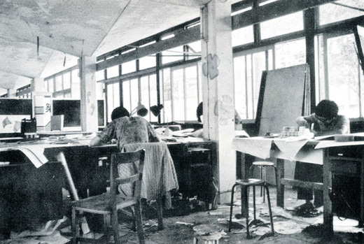 那時全系四個年級,只不過六十來個學生。在系館中,每人分配一張全開的大圖桌和能上鎖的櫃子,空間上的寬裕可能是當年最好的。在炎熱的夏季,門窗全開,並不覺得悶熱。靠窗工作的同學常擔心的是隔夜的驟雨,把一張快完工的圖紙潑上灰墨點點。在我大一時,全系的圖桌安排大致上是井然有序、且一目瞭然的(與我後來參觀Mies所設計的IIT的Crown Hall相當類似),只有少數學長用夾板、布幔隔了幾個小間。現在回想,那種簡單的長方形空間、那種圖桌的安排方式,當然還有建築物大片門窗所特有的透明性,其實就是現代主義;人與人之間是明朗而無隔閡的,個人的私密性很低,但是團體的認同感較高。