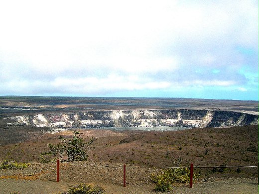 在用過午餐後,我們經由11號公路抵達Kilauea Visitor Center,參觀與夏威夷火山有關的許多展覽;而得知整個夏威夷群島都是由不斷的火山爆發而形成。Big Island是各島中最年輕的島,仍有活火山持續在活動。當日參觀的重點自然就是Kilauea Caldera(火山口的圓形陷沒地形)一帶。我們首先向下走,進入Thurston Lava Tube (熔岩形成的隧道)。原來當火山熔岩流經一低窪的袋狀地形時,其表面的熔岩逐漸冷卻形成硬殼,而其內的熔岩持續流走,便形成隧道般的特殊景觀。隨後我們經過大、小不等的火山口(很奇怪的是這一帶的火山口都是向下陷沒,或許原先是更低的谷地或湖泊),終於抵達Kilauea Caldera。這真是一個少見的奇景,可比之為一超大的隕石坑;其形狀略呈橢圓形,長約100米、寬約30米,其西側還包含了一個小的陷沒形火山口。眾人均驚嘆不已,並拍攝許多照片留念。之後我們又繞到此區北側的熱氣噴出口,據說只要在熱氣中站滿30分鐘便大有養顏美容之效;大家紛紛站入熱氣中,但似乎無人能忍受五分鐘以上,只得遺憾而別。