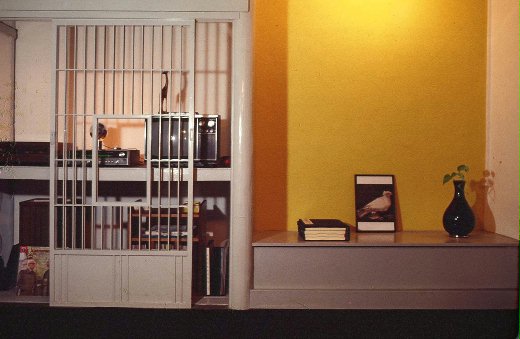 那段時間,或許是我交友最廣的時候。又因為住在這棟獨特的房子裡,常有朋友來訪;凡來過的朋友無不喜歡。建築圈的朋友也常來此聚會,客廳時常滿座;有時是朋友又帶著朋友,許多人從來沒見過。客廳的空間特質似乎不適合放家具,而房東又早將塌塌米丟棄(國人使用習慣不同);我於是訂購了一塊地毯,眾人可席地而坐。整個室內空間是既小巧、又親切。我曾仔細丈量這棟房子,並繪成平面圖;發現所有空間的尺寸都是30厘米(約為一尺)的倍數。例如工作間右側的窄廊,寬僅60厘米,這是兩人必須錯身而過的極小距離!但是一旦住定,好像也沒有甚麼問題。從建築面積來看,同樣家庭人數居住在傳統日式木屋(包含其特有的彈性使用),大概只需要美國標準的一半就夠了。我依序丈量各個空間,得知工作間為300×360,客廳後側的穿廊為210×360,儲物間、浴室和廁所分別為150×210,150×180以及90×180。櫥櫃深度為60或90。我尊重房屋原有的樸素感,只將少數牆面塗色以稍增變化。