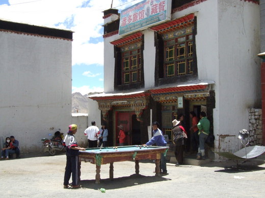本年7月在往珠穆朗瑪峰路上,就在西藏定日縣縣城大道邊上,拍到上圖〔藏民的簡易太陽能煮水設施〕;而後來在由日喀則回拉薩途中,進行藏民家訪時,也在樓上看到相同的簡易太陽能煮水設施〔如下圖〕。可見得除了較先進的太陽板熱水器外,這種簡易太陽能設施在西藏也有不少使用者。