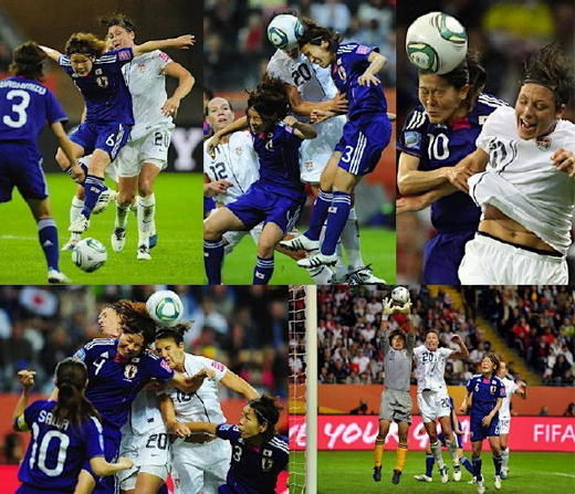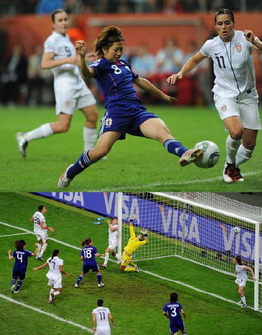 日本隊從頭到尾一律擺出 2-4-4 的銅牆鐵壁應戰, 擋-防守-擋-防守, 伺機以精準的傳球, 突圍進攻, 雖然上半場踢得過分謹慎, 完全沒有前兩場的行雲流水的攻勢, 失分-反攻-再失分-再反攻, 絕不退縮, 最後在PK戰擊敗美國隊.