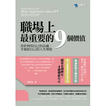 職場上最重要的9個價值![]() | 機遇只留給有準備的人:你能做多少前期準備,機遇就能使你實現多大價值。![]() | 30歲後你會站在哪裡?:想出人頭地,就必須接受的39則殘酷忠告![]() |