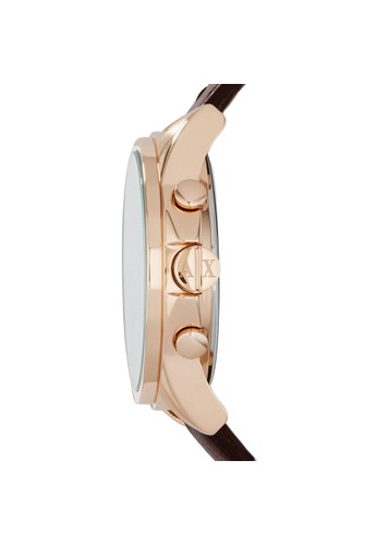 富郁醇厚的蘇格蘭威士忌粽色皮革錶帶搭配玫瑰金錶殼以及寶藍色三眼計時錶面,經典中帶著奢華風格,形塑Armani Exchange一貫的紳士質感。
