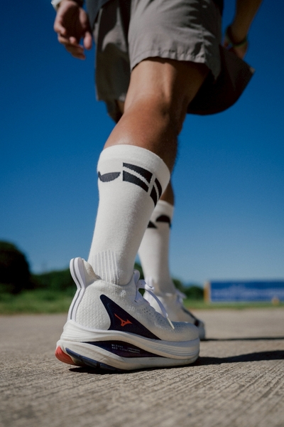 VISTA 2 襪套式設計消除了我的擔憂,起初會擔心針織襪套太鬆或過緊,也擔心跑動時腳會在鞋腔裡亂晃,然而,這兩者都沒發生。為此,我刻意搭襯了厚薄不一的兩雙襪子,跑動都呈現同樣的『安定性』;而在中底部分,結合 TPU 與 EVA 的雙層式中底 MIZUNO ENERZY NXT ,踩起來很柔軟、但跑起來卻很具彈性、韌度──軟彈的腳感不會吃掉腳力,強韌回彈導入下一個步態行程,順著足部的甜蜜點往前送。