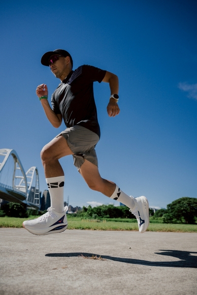 讓我耳目一新的是 MIZUNO 的獨家技術 SMOOTH SPEED ASSIST(SSA)。針對曲度結構的幾何下功夫,在不少跑鞋品牌都有類似的作法,但 SSA 技術在 MIZUNO 的菁英競速鞋更為激進 (從照片看似乎腳跟不落地?)。然而, NEO VISTA 2 保有了一定的曲度結構,同時,跑者在單腳接地時,無論是中足、全腳掌或是前足落地,都能快速地導入到甜蜜點。一當速度提高到某個狀態後,維持速度就變得比較輕鬆。