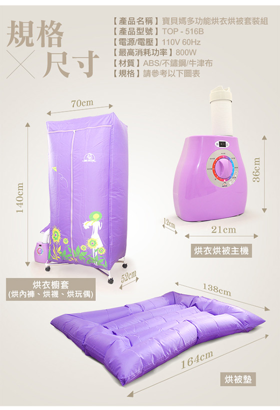 大推寶貝媽-多功能烘衣烘被套裝組(TOP-5168)給各位