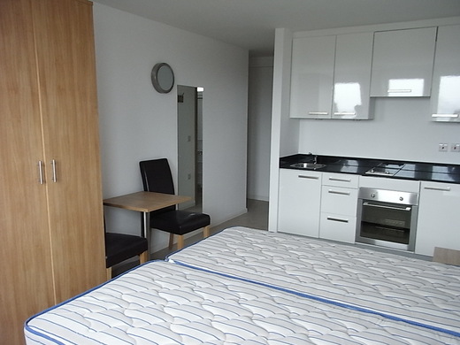 房間裡有床、廚具、廁所,每層樓都有共用的洗衣機與烘乾機,每一間還有分一個堆放物品的大儲藏櫃。很像台灣四、五年前流行的小套房,只是更像飯店的格局。而台灣小套房還有台灣人偏好的「樓中樓」設計,多了點「家」的感受。看來台灣建築業可以來英國促銷「樓中樓小套房」,引入「家」的氣息才是。