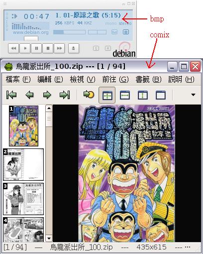 三、用comix看漫畫包真的很棒!網路上有大大說,要先用wine模擬Windows環境,再安裝comicviewer來看漫畫,其實沒有那麼麻煩啦,小弟介紹您用comix就可以搞定了,但是如果您像我一樣,會出現jpegtran這個套件找不到的錯誤的話,別灰心,只要再安裝libjpeg-progs這個套件就好了,當然這也是問Google大神才找到的解決方法。因為EEE PC的螢幕是長條型的,所以漫畫最好轉90度,剛好填滿螢幕來看,但是如果少了jpegtran這個東東,就沒有旋轉功能哦,就差很多哦!