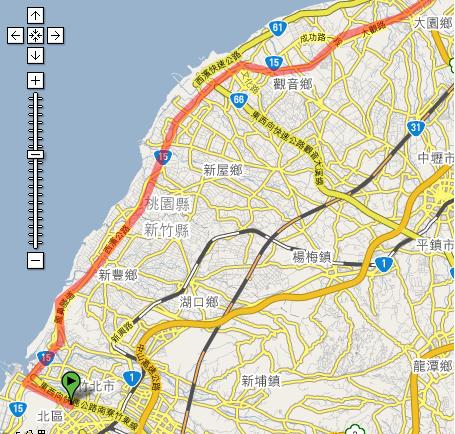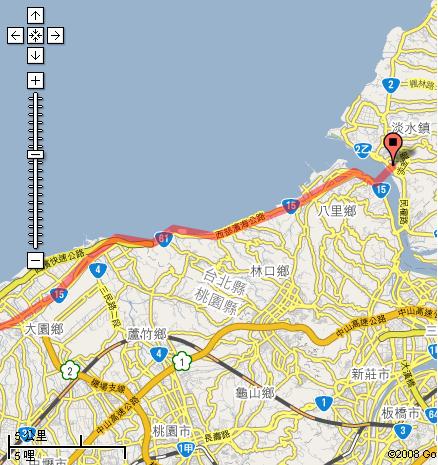 竹圍路→仁愛街→竹圍街→建國路→接入(省15)竹圍大橋→接入(省61或省15)西濱公路→《八仙樂園》(右彎)商港路:19Km;