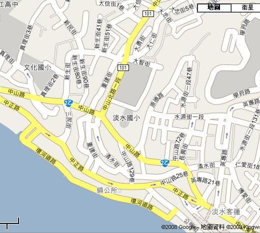 (左彎)中華路二段、一段→龍米路三段、二段→《八里渡船頭》:5Km;→淡水渡船頭→淡水過夜