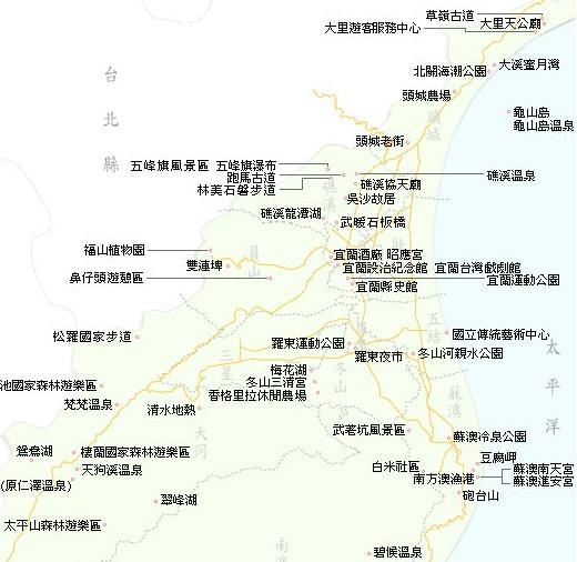 頭城老街、礁溪公園、武暖石板橋、宜蘭市昭應宮、獻馘碑、宜蘭公園、宜蘭設治紀念館、舊宜蘭監獄、