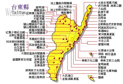 光復鄉馬太鞍濕地、光復糖廠、瑞穗自行車道、舞鶴石柱、玉里廣盛堂羊羹、玉里橋頭麵、富里鄉吳江村眺望玉山、池上飯包店、池上環圳自行車道、大坡池、關山環鎮自行車道、鹿野鄉武陵綠色隧道、高台觀光茶園、