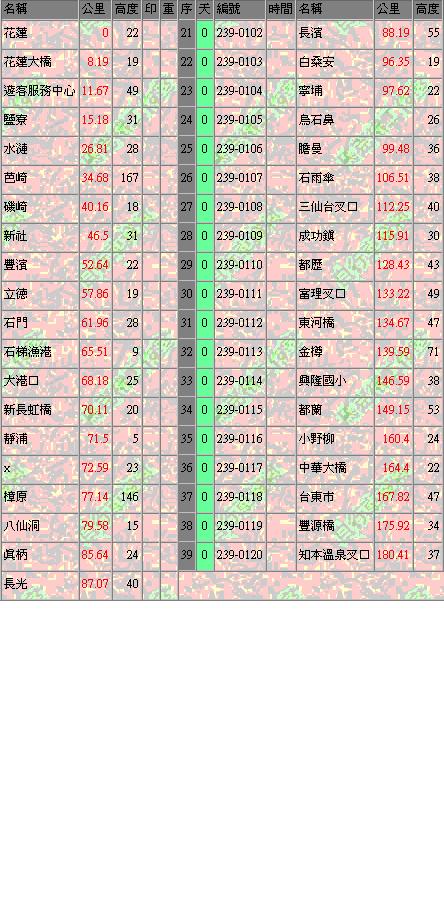 台東縣:長濱鄉-成功鎮-東河鄉-卑南鄉-台東市-太麻里鄉