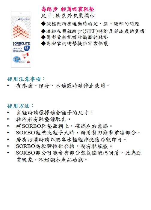 內容【SORBOTHANE】舒宜保 輕薄吸震鞋墊(SORBO 吸震鞋墊)[措施]送禮輔具-日常護理-藥品