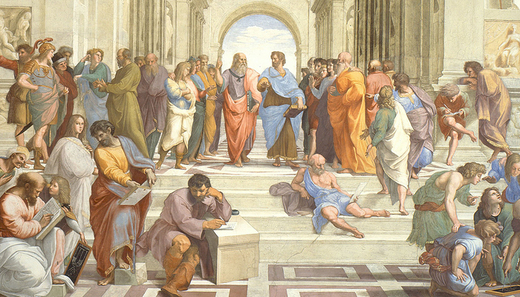 ﹝上圖:哲學家群相‧拉斐爾在梵蒂岡宮簽字大廳所繪製的雅典學園﹞