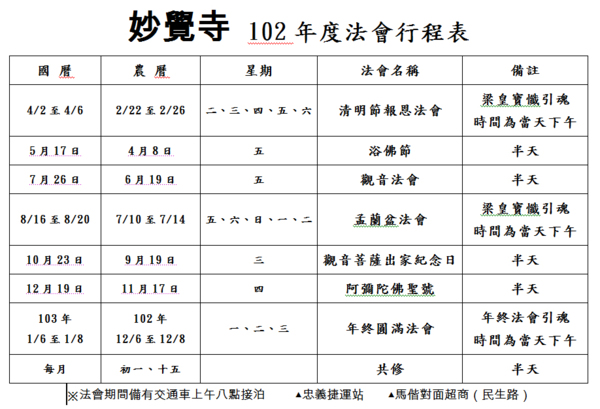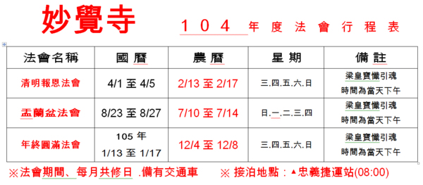 歡迎有興趣的法友參與哦! 妙覺寺104年度佛法課程表