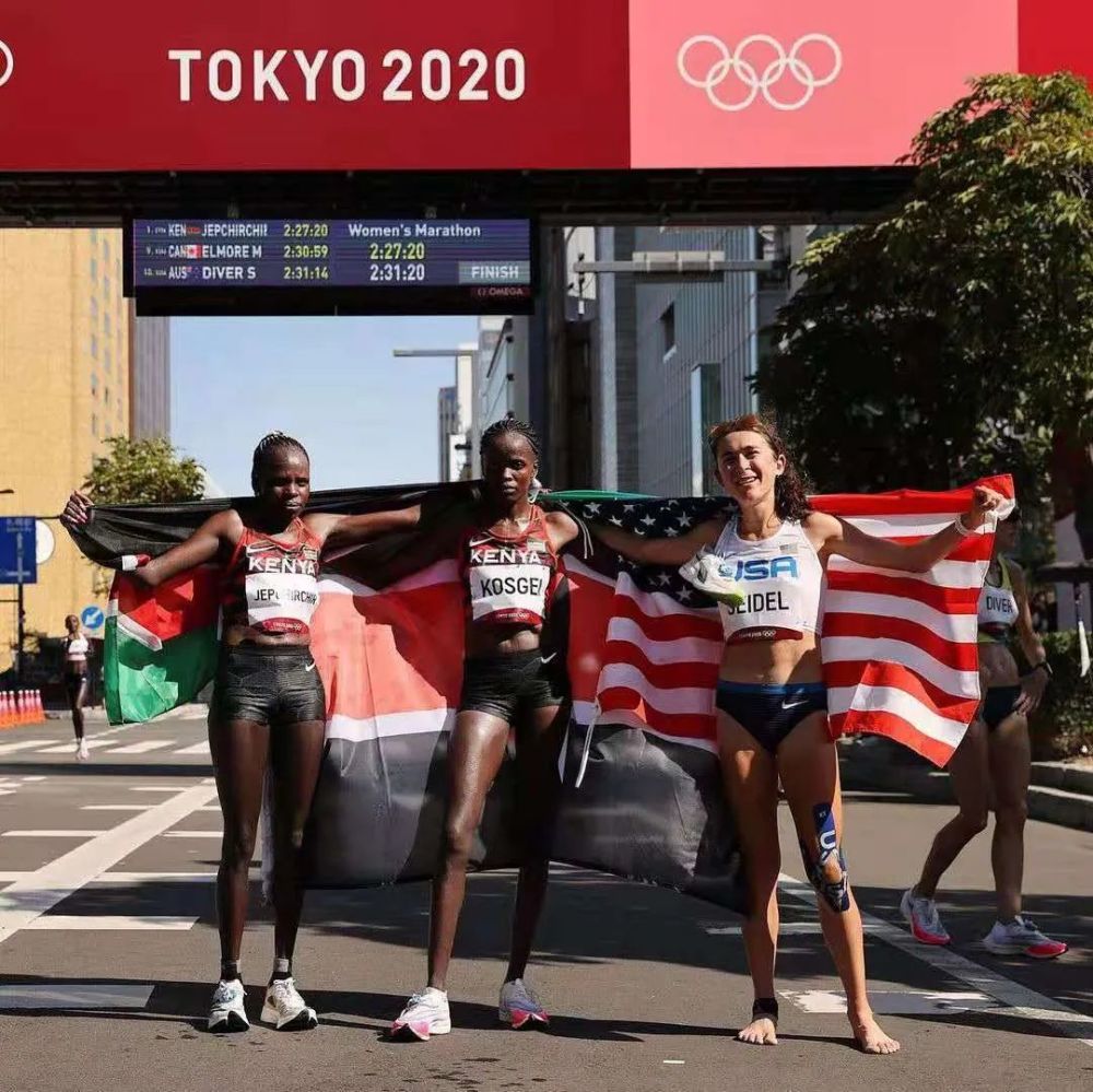對于獲得第三名的美國選手莫莉·賽德爾(Molly Seidel)而言,奧運會馬拉松僅僅是她的第三場全馬比賽:去年2月,賽德爾在美國奧運馬拉松選拔賽上完成首馬,以2:27:31位列第二順利拿到奧運資格;10月在倫敦,賽德爾將個人最好成績提升至2:25:13,獲得第六名。