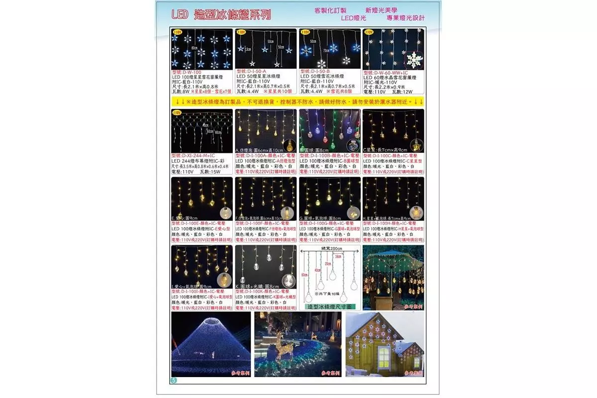 造型燈飾、聖誕燈飾、聖誕飾品、造型充氣氣球、LED燈、網燈、瀑布燈、窗簾燈、電池燈、舞台燈、雷射燈、跑馬燈帶、年節裝飾、商業用燈、戶外燈、裝飾燈、節慶燈