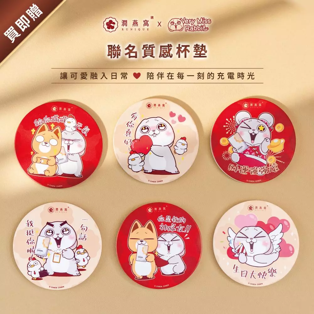 ▲隨贈【潤燕窩x好想兔】聯名質感杯墊,共有6款,非常適合搜集收藏!
