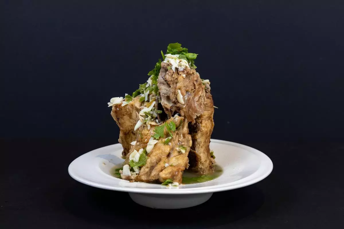 ▲彰化員林泰式料理推薦《享時泰式料理》火山排骨,堆疊式排骨搭配泰式香料與蒜香醬汁的特色泰國料理(圖/業者提供)