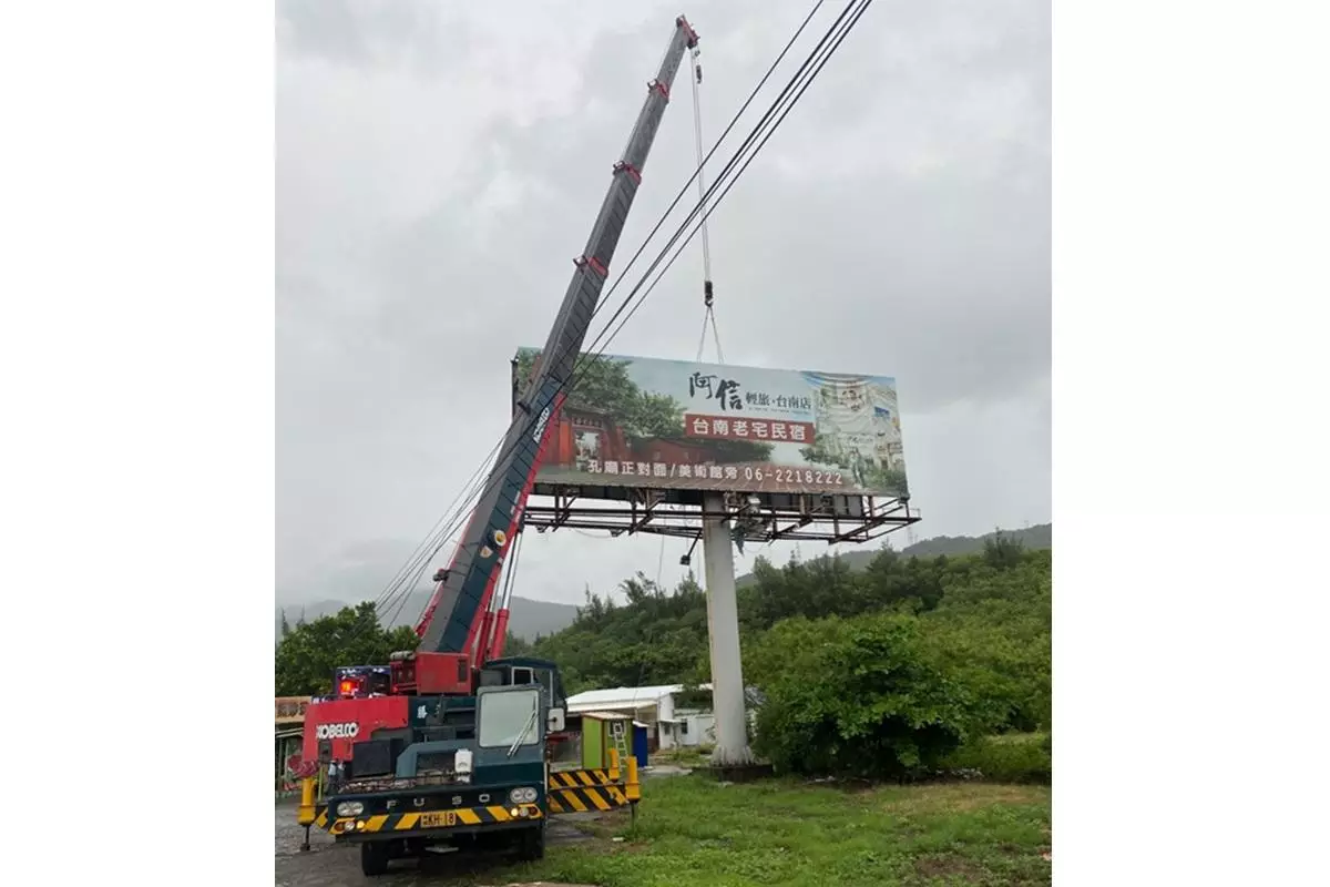 恆春某知名觀光飯店進行外觀翻新工程時,需要於主要道路旁進行大型招牌吊掛作業,由於位置臨近車流頻繁路段,施工安全與效率成為一大挑戰。