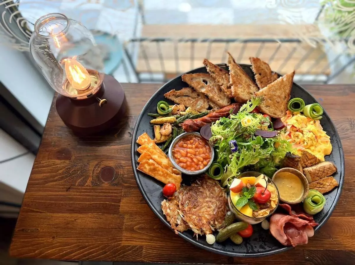 A:「上帝的早餐盤」以豐富且均衡為設計核心,包含香煎薯餅、德國香腸、培根、半熟蛋、英式焗豆、時令炒蔬、綜合生菜沙拉與厚切麵包,一次滿足蛋白質、蔬菜與澱粉三大營養需求。整體口味清爽不油膩、份量充足,兼具視覺美感與實際飽足感。餐點理念在於讓顧客於忙碌生活中,仍能透過一份用心早餐放慢步調,因此無論朋友聚餐、情侶約會或獨享週末早晨,都成為不少人的首選。