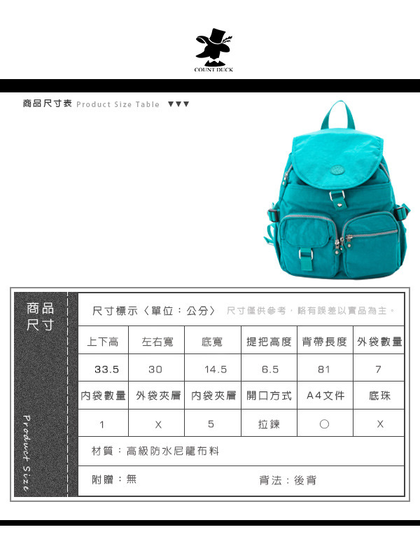 COUNT DUCK美系悠活輕量後背包-CD-006 綠色評價
