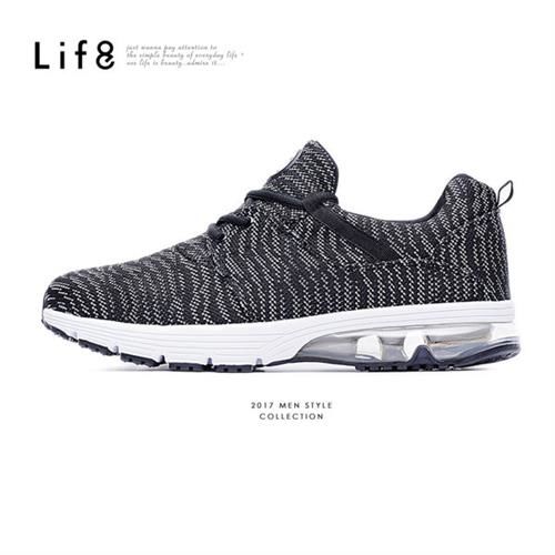 Life8-彈力飛織布。輕量。半氣墊AIR CUSHION運動鞋-09514-黑色好物分享