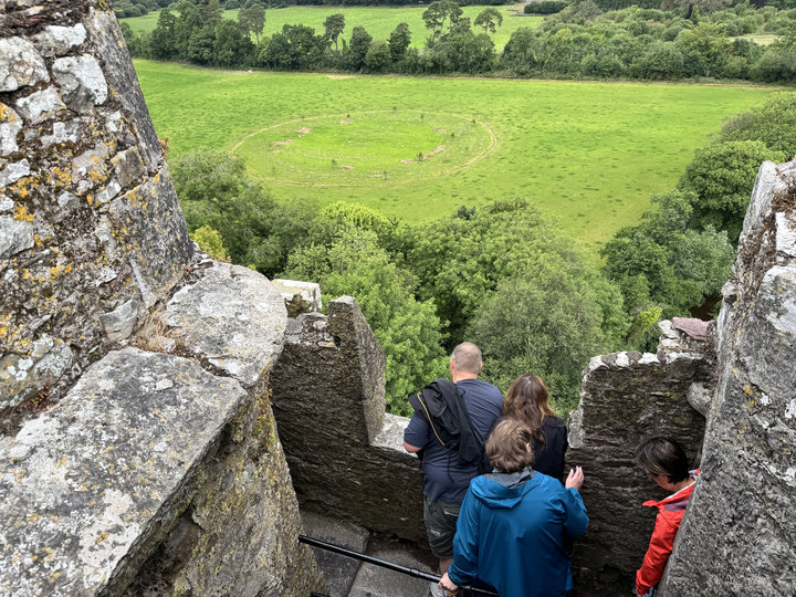 | 登上布拉尼城堡最高30公尺城堡,俯瞰城堡下綠色草原及遠方布拉尼村。 |