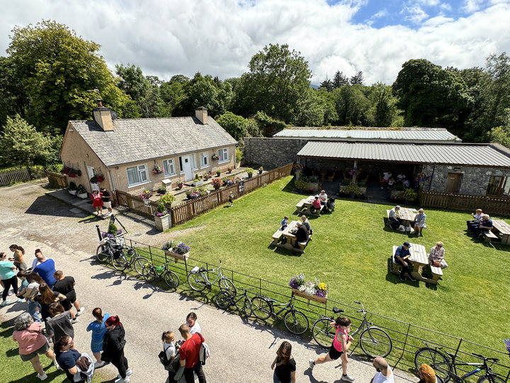 從羅斯城堡俯瞰萊恩湖畔露天咖啡座,也能俯瞰另一邊全湖區。 |