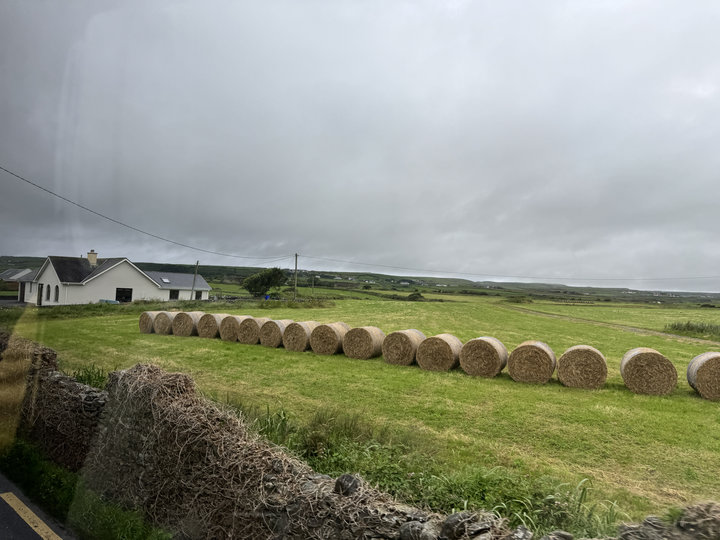 | 風雨不停,車奔往莫赫斷崖 (Cliff of Moher),綠色島國的愛爾蘭,經雨水沖刷,更加亮綠青翠,下雨是必然,不起風,不下雨就不叫愛爾蘭!離開前,旅館人員輕寫淡描說著。 |
