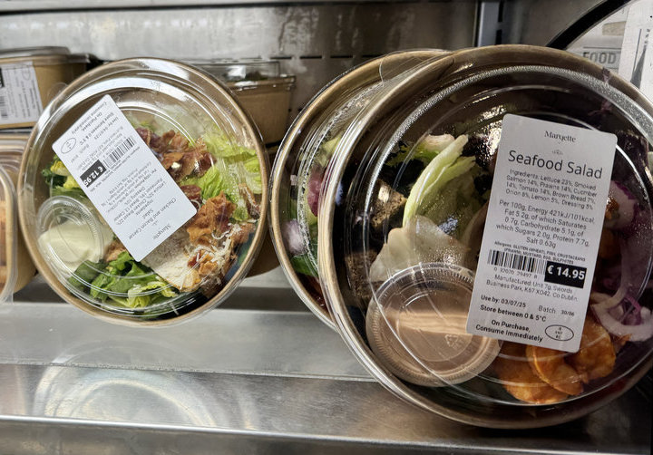 | 請看看標價,一份沒魚沒肉,簡單的青菜沙拉,要價12到15歐,不愧為世界富裕國家榜首。愛爾蘭共和國薪資高,稅更高,日常生活花費,也讓居民叫苦連天。 |