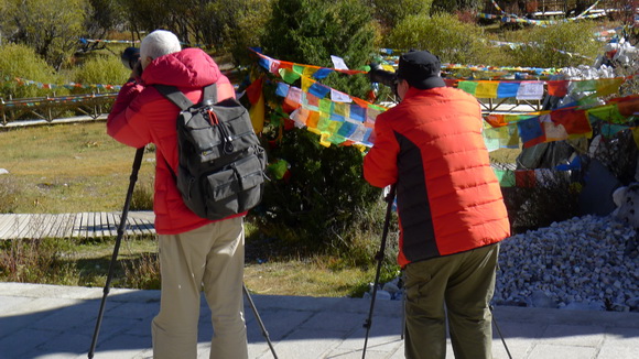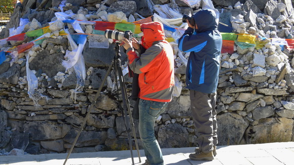 這位仁兄,請問您在拍什麼?!當然是拍神山啦!哦!我明白了,這個位置躲開了風馬旗,避開了枯枝敗葉。