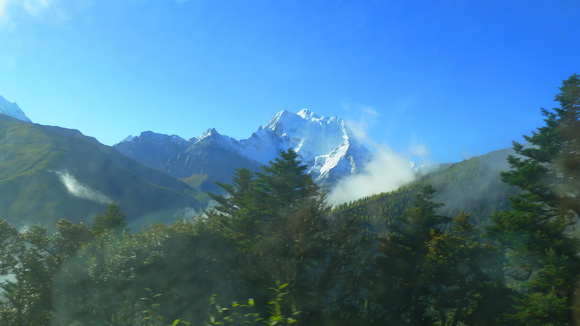 往亞丁的公路時好時壞,晨霧時聚時散,總之壞路比好路多,快到仙乃日神山公路上。