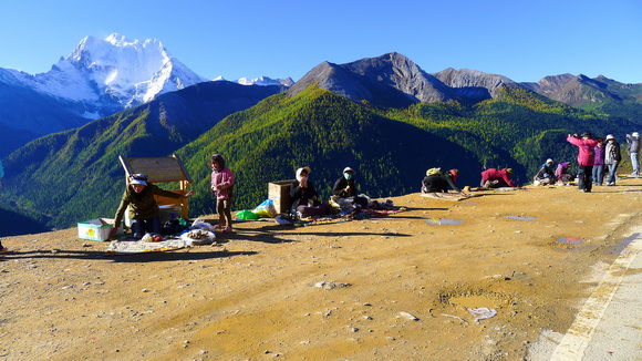 仙乃日神山和公路邊藏族小販,別看陽光強烈,可是寒風刺骨。