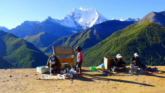 500公尺的沿途園區藏婦在路邊擺攤,這裡是當地藏族保護區,他人不能隨意進入買賣。