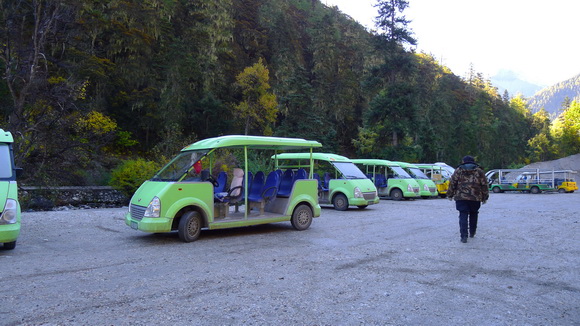 走一了小段碎石路到龍同壩,購票搭電瓶車前往扎灌崩。