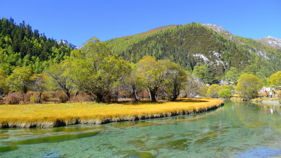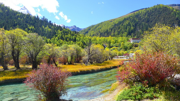 沖古草壩的秋天是美不勝收,草黃了,葉紅了顏色變多了。
