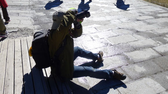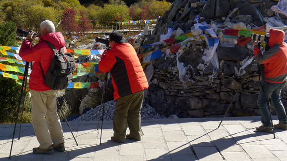 拍過了亞丁的美景換換口味了,看看攝影愛好者拍攝時忘我的專注與專業吧!哈!哈!您拍風景我拍您,拍到忘神的您,角度取準了嗎