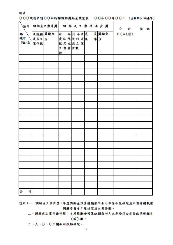 法務部鄉鎮市調解獎勵金核發要點