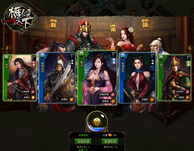 戰場上驍勇善戰的將領是關鍵,玩家透過酒館可隨機獲得1位或5位名將,另外在征戰中的「英雄集結」也是個途徑喔~每天都有免費的挑戰機會,戰鬥勝利就可隨機獲得一位英雄。