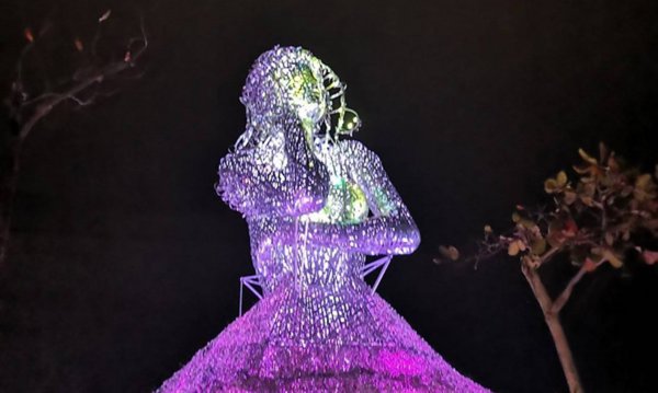 台灣燈會來到第30屆,今年輪到在屏東縣登場。在大鵬灣燈區的「藝術國際交流燈區」,出現第一座以新住民藝術主燈「海之女神」,由藝術家王文志操刀,運用5噸鋼材、30萬個蚵殼交錯編織而成令人震撼的「女神襯裙」,夜晚則以LED呈現獨特的光影變化,讓「女神」在白天、黑夜各有風采,不只在網路上引發熱烈討論,也成為最新的打卡地標。