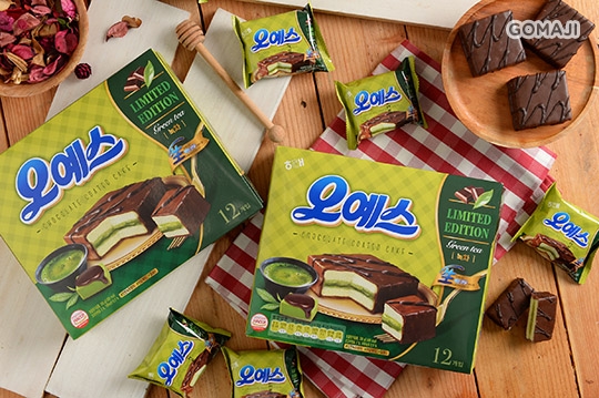 抹茶口味夾心[植物油(棕櫚油,棕櫚核仁油,硬質棕櫚油),品質改良劑(D-山梨醇),糖,粉狀結晶葡萄糖,水,硬質棕櫚油,乳清粉,綠茶粉,香料(抹茶,牛奶)],小麥粉,全蛋液,糖,水,玉米糖漿,酥油(葵花油,米糠油,脂肪酸丙二醇酯,脂肪酸甘油酯,卵磷脂,迷迭香抽出物),巧克力[糖,可可粉,奶粉調製品(全脂奶粉,可可粉),卵磷脂,香料,植物油(棕櫚油,棕櫚核仁油,硬質棕櫚油)],葡萄糖,酥油2[植物油(棕櫚油,硬質棕櫚油,椰子油),卵磷脂,迷迭香抽出物],人造奶油[植物油(棕櫚油,椰子油,米糠油,大豆油,鹽,全脂奶粉,脂肪酸甘油酯,大豆卵磷脂,著色劑(β- 胡蘿蔔素),香料], 品質改良劑(D-山梨醇),混合食用油(玉米油,葵花油),穀物製品(小麥粉,糯米,小麥澱粉),合成膨脹劑[碳酸氫鈉,酸性焦磷酸鈉,葡萄糖酸-δ內酯,玉米澱粉],混合配方1[丙二醇,乳酸鈉,醋酸鈉,冰醋酸,香料(檸檬),水],混和配方2(脂肪酸甘油酯,脂肪酸山梨醇酐酯,脂肪酸蔗糖酯,丙二醇,甘油,水),酒精,小麥澱粉,食鹽,防腐劑(丙酸),關華豆膠
