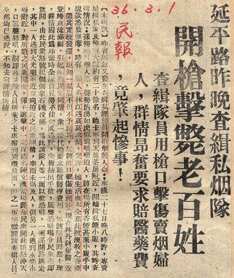林婦表示生活困難,跪地求饒,苦苦哀求至少歸還其錢財、以及其餘經過合法繳稅的公菸,但查緝員堅持全部沒收。而林婦的糾纏讓查緝員心生不耐,同時紛擾也吸引越來越多的民眾圍觀,使查緝員大為緊張;又加上語言溝通不暢等因素,林婦被葉得根以槍托擊傷頭部,頓時血流如注,滿臉是血昏迷倒地。圍觀民眾目睹此景後,憤而將查緝員包圍。傅學通逃到永樂町(今西寧北路)開槍示警,卻擊傷了在自家門口看熱鬧的市民陳文溪(20歲,胸部中彈,送醫次日死亡)。隨後查緝員逃至永樂町派出所,再被護送轉移至中山堂旁的警察總局。激憤的群眾六、七百人在當天晚上包圍警察總局,要求警方懲兇,但是由於警察局長官有意包庇下屬。市民眼見官吏濫開槍傷及無辜,卻得不到滿意的答覆,引發暴動,演變成流血事件,史稱「228事件」。2006年,政府宣布228事件紀念日全國降半旗紀念。