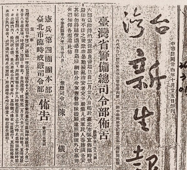 1947年紐約時報對二二八大屠殺的報導 http://blog.udn.com/c557755/10667893