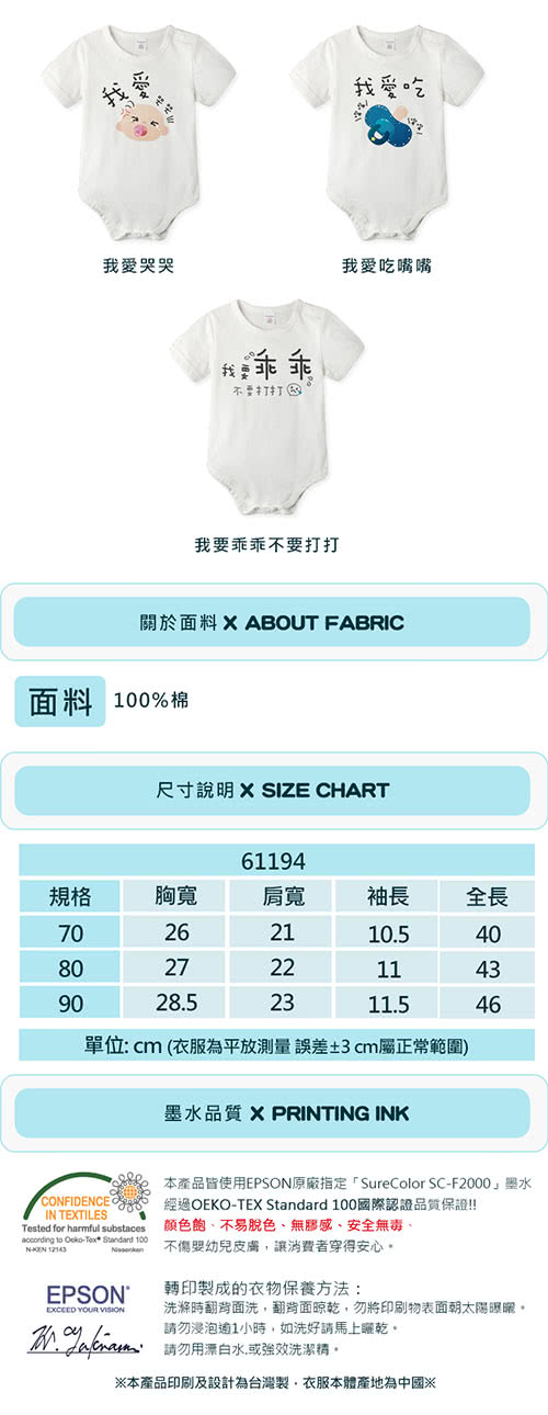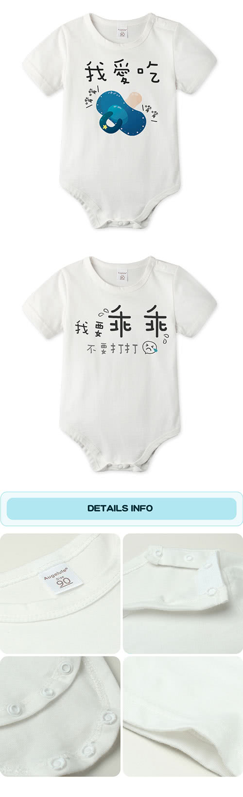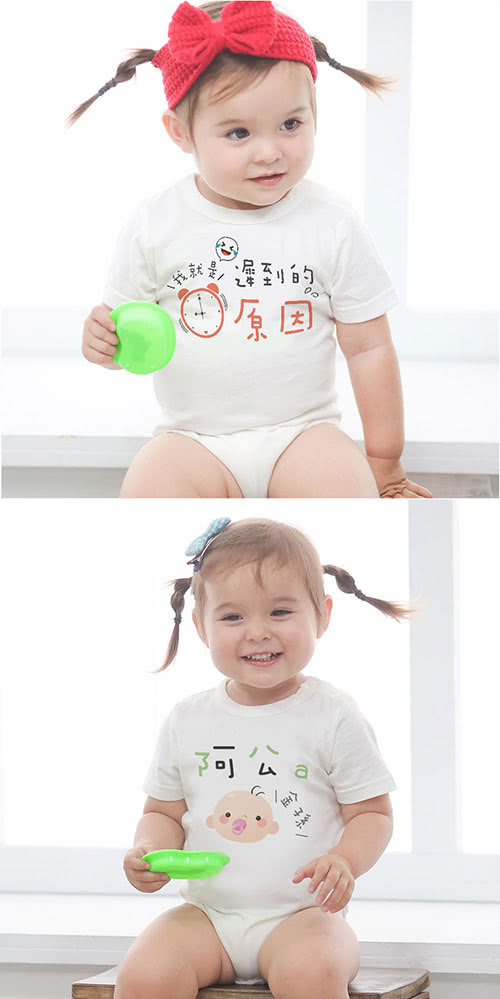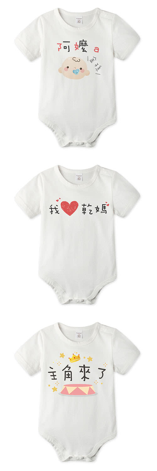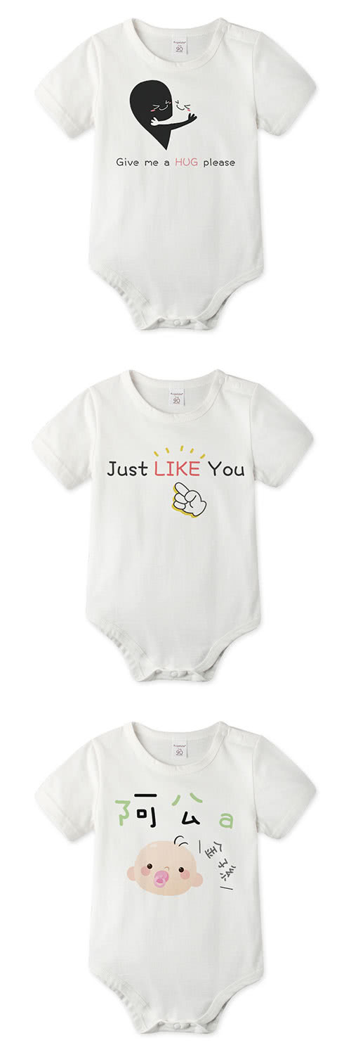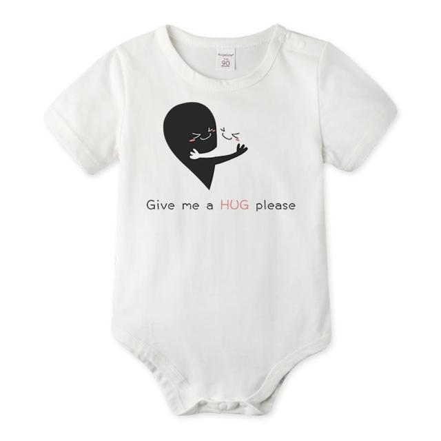 雙11特惠活動,搶到賺到:【baby童衣】任選 獨家趣味文字印花 純棉短袖包屁衣-白底 61194(Give me a hug please)