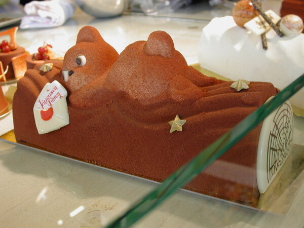 聖誕節必備的樹幹蛋糕,有了矽膠模就可以實現天馬行空的創意造型。一隻小熊趴在上面,再噴上可可脂,吸引無數小朋友目光
