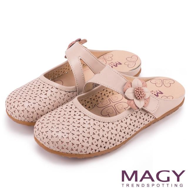 雙11特惠活動,搶到賺到:【MAGY】經典甜美舒適 皮革花朵點綴半包式懶人鞋(粉紅)